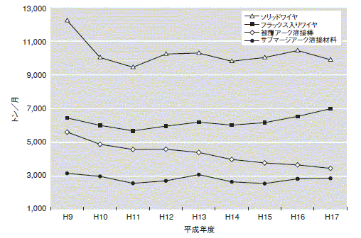 図1 溶接材料の品種別国内出荷量(日本溶接棒工業会統計)
