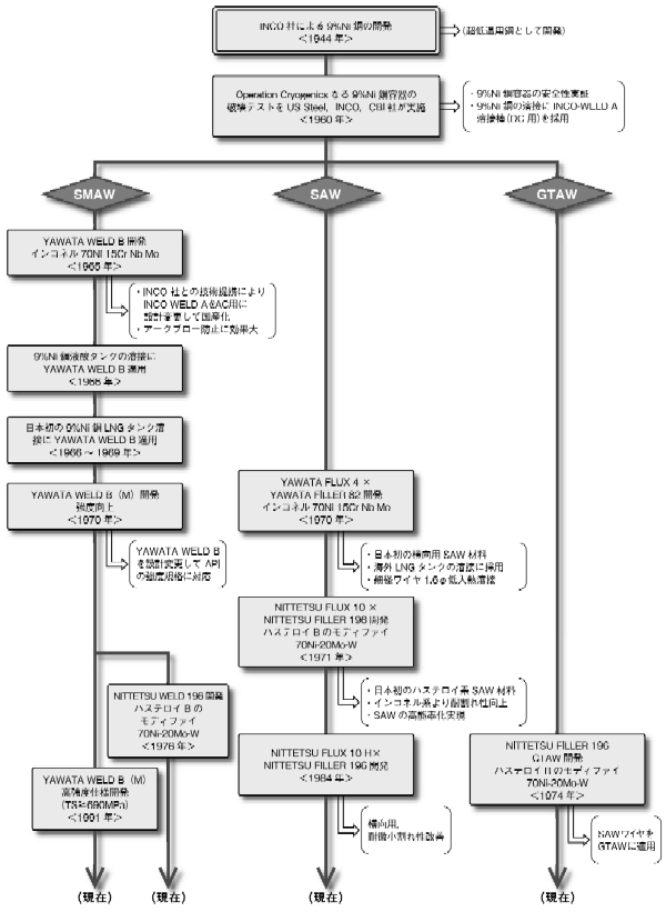 図5 当社の9%Ni鋼LNGタンク用溶接材料の開発経緯