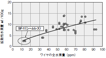図5 フラックス入りワイヤの全水素量と拡散性水素量の関係