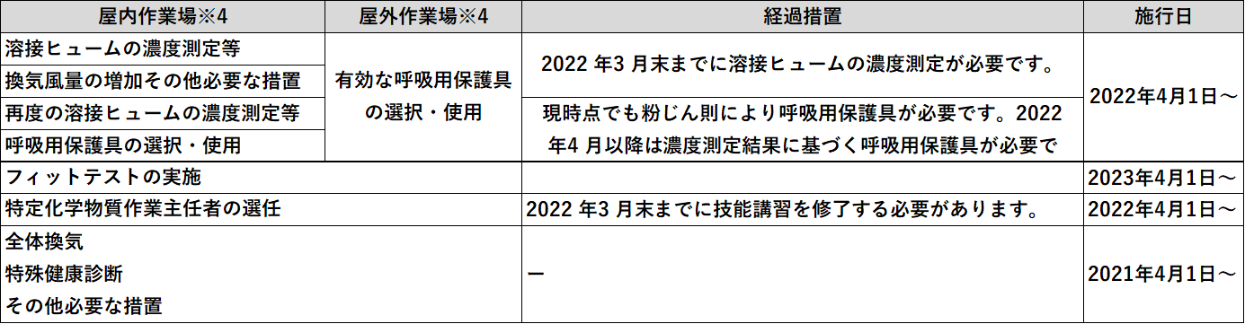 ※2 金属アーク溶接等作業:金属をアーク溶接する作業、アークを用いて金属を溶断し、またはガウジングする作業、その他溶接ヒュームが発生する作業のこと。